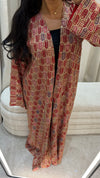 Kimono pensé par la Maison et confectionné par nos couturiers à Dubai, à partir d'une mousseline brodée fluide. Idéal pour les grandes occasions, ce tissu offre un tombé vaporeux, sublimé par les détails perlés.