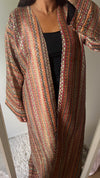 Kimono designed by the House and made by our tailors in Dubai, ideal for special occasions, this fabric offers a vaporous drape, enhanced by the embroidered details on a very high quality fabric called "Jawamar".