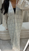 A kimono designed by the Maison and crafted by our tailors in Dubai, from flowing Indian chiffon. Ideal for special occasions, this fabric offers a flowing drape, enhanced by beaded details.