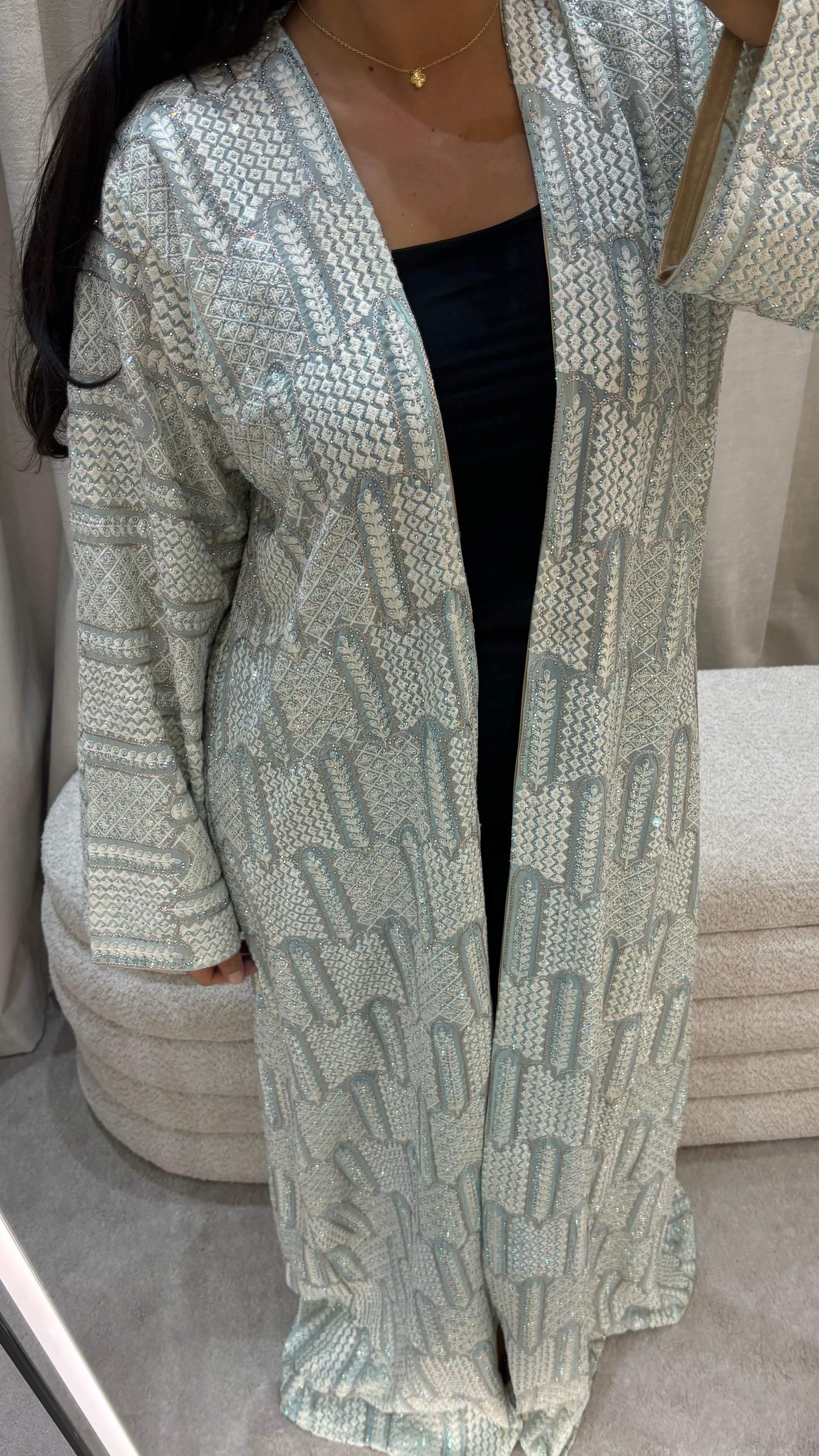 A kimono designed by the Maison and crafted by our tailors in Dubai, from flowing Indian chiffon. Ideal for special occasions, this fabric offers a flowing drape, enhanced by beaded details.