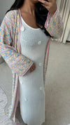 A kimono designed by the Maison and crafted by our tailors in Dubai, from flowing Indian muslin. Ideal for special occasions, this fabric offers a flowing drape, enhanced by beaded details.
